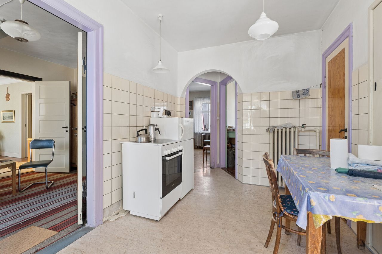 Den skønneste byvilla fra 1932. Her træder du ind i en ægte tidslomme, hvor det meste står oprindeligt med al den charme og gode byggeskik, der karakteriserer en villa fra den tid. Her er hall, stuer en suite og rummelige værelser, badeværelse med kar og terrazzogulv, samt det tidligere butikslokale fra byens VVS-udsalg - stadig med disk og reoler.