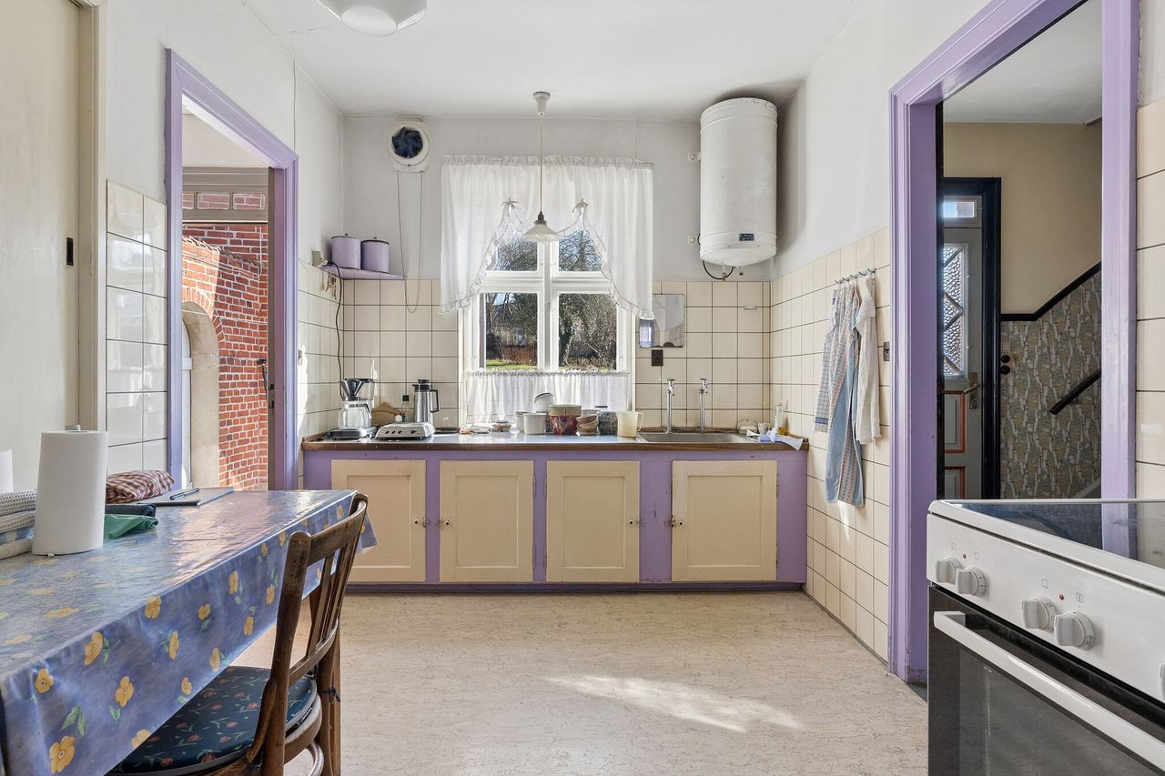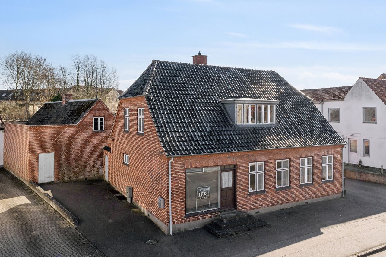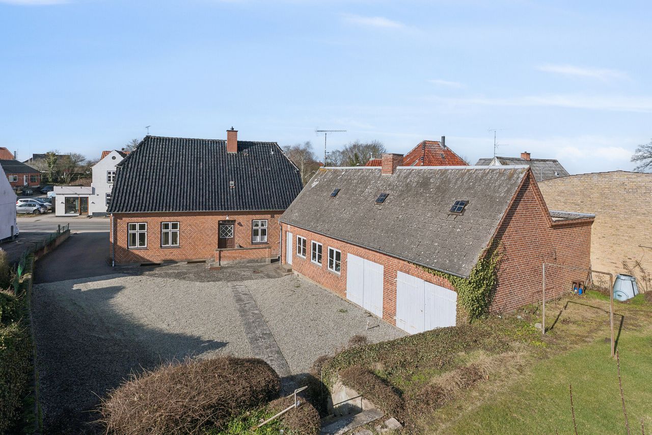 Du skal påregne nyt tag på begge bygninger, nye vådrum, måske et nyt centralvarmesystem og generel opdatering overalt. Men så får du også muligheden for at genskabe en utrolig flot og æstetisk byvilla på Hovedgaden i Skibby.