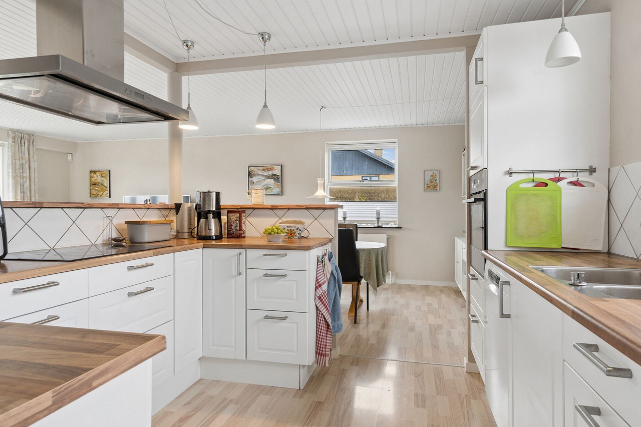 Her finder du: Entré, lyst nyere køkken, som er delvist åbent til god vinkelstue med udgang til terrasse. 2 store værelser, hvoraf det ene oprindeligt har været 2. Lyst og moderne badeværelse fra 2021 med brus og gulvvarme samt rummeligt nyere bryggers.